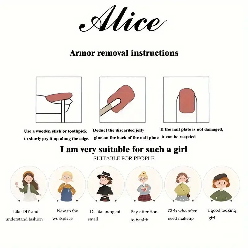 5.How to remove the nail patches? The glue type can wait for a long time to let it fall off on its own. Frequent immersion in hot water can accelerate the fall off. The quickest way to remove it is to use a glue remover or nail remover: apply a few laps around the perimeter of the nail piece, let the liquid penetrate into the nail piece, and then gently peel it off.