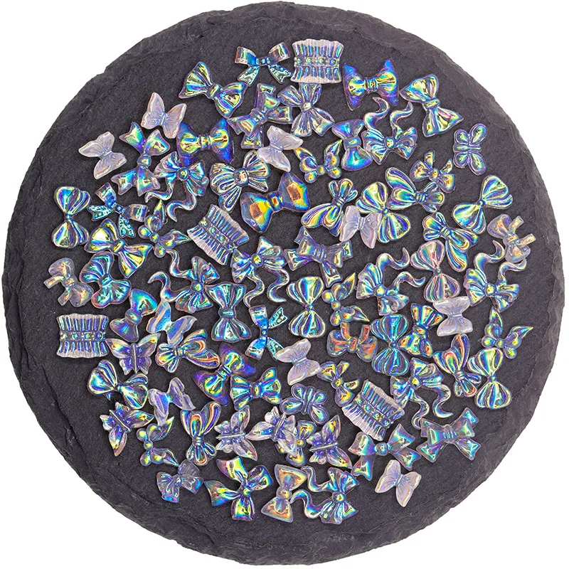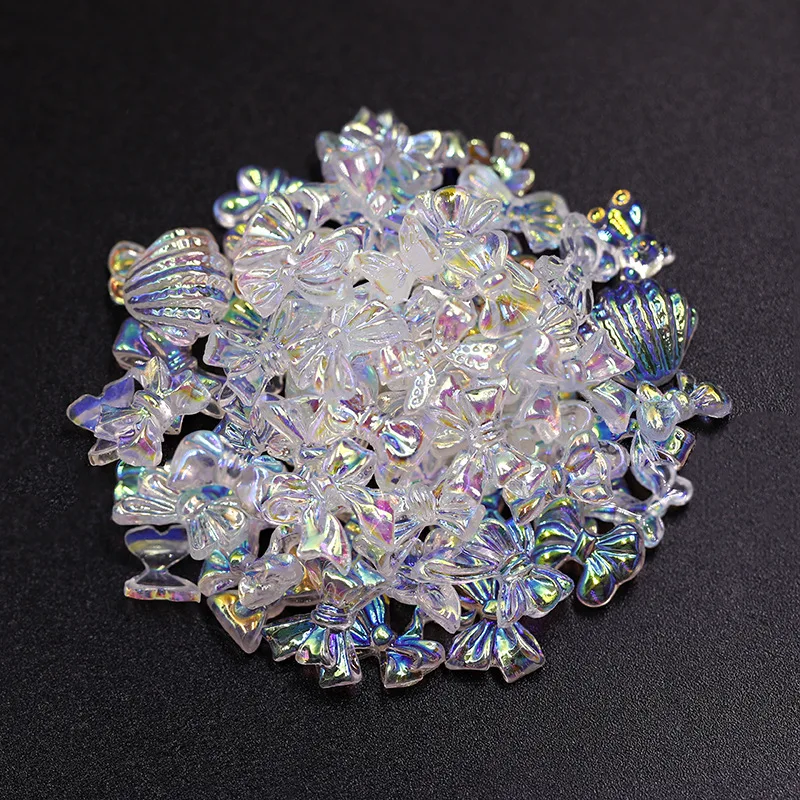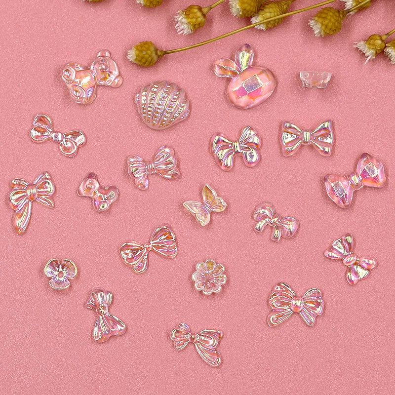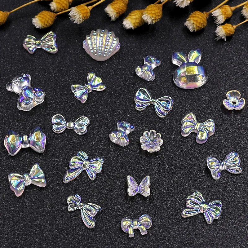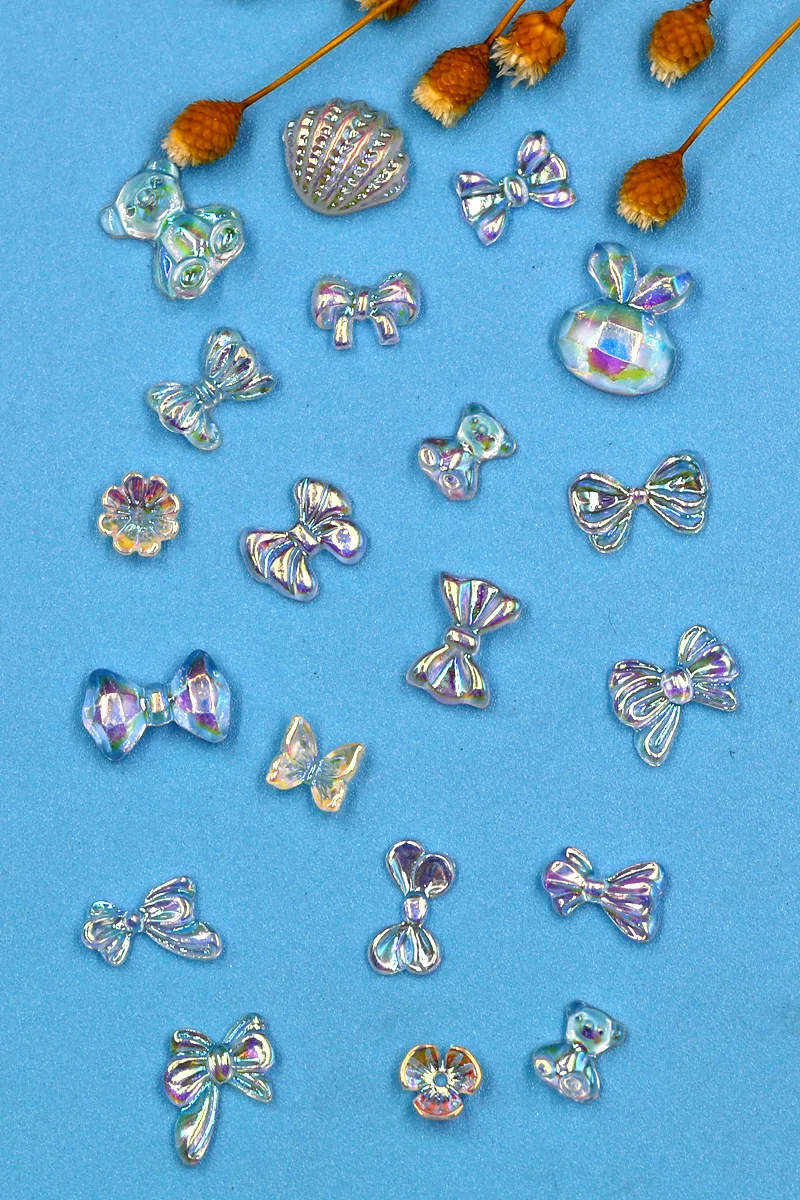 20PCS Cute Aurora Nail Charms Accessories Bow Butterfly Bear Flower Heart 3D Acrylic Nails Art Decoration Rhinestones Supplies