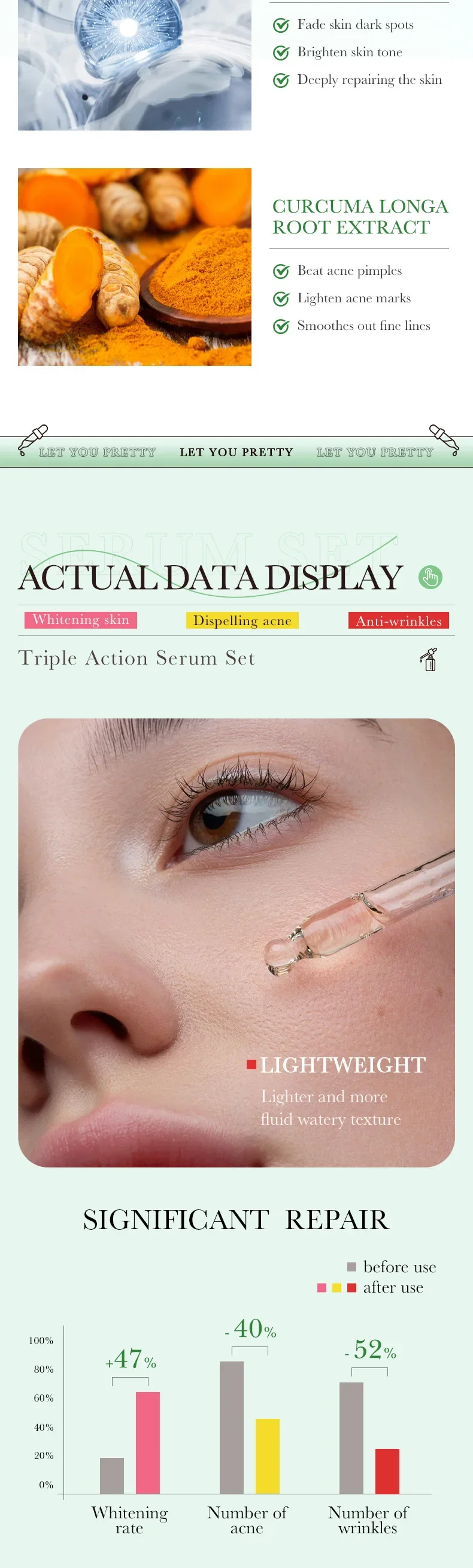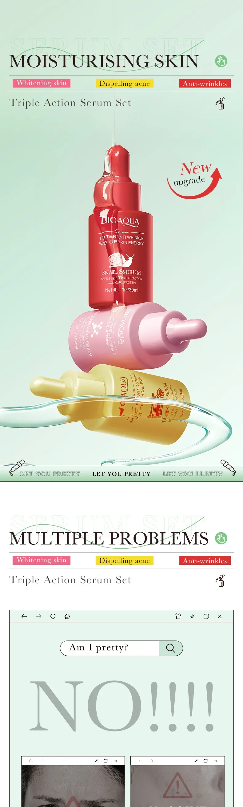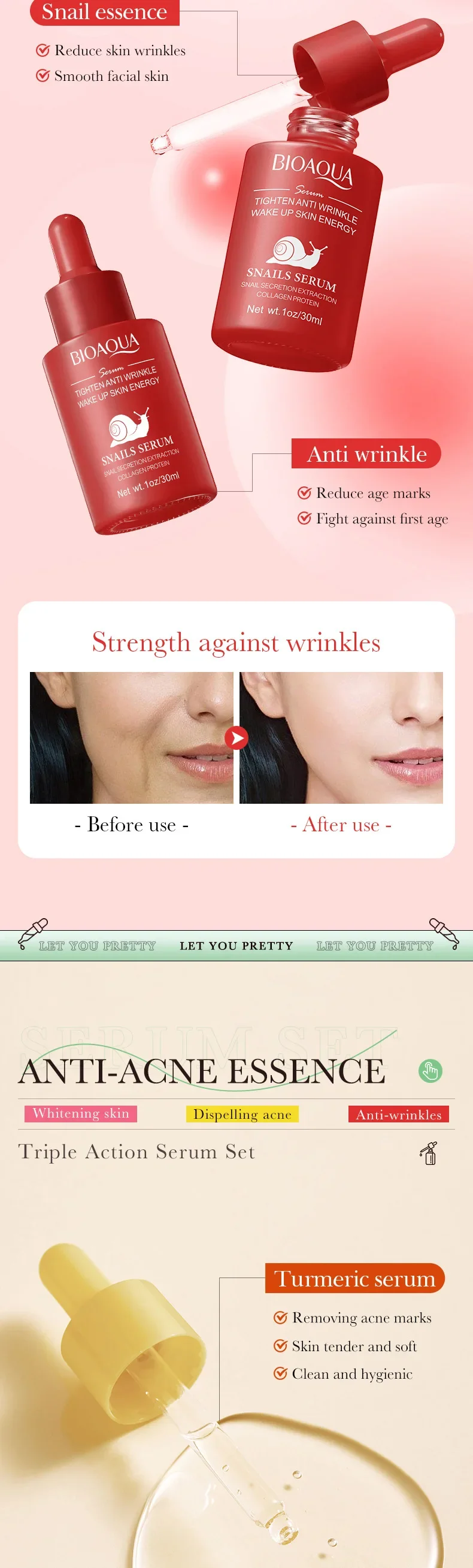 3pcs BIOAQUA Snail Turmeric Nicotinamide Facial Essence Sets Moisturizing Firming Brightening Face Serum Skin Care Products