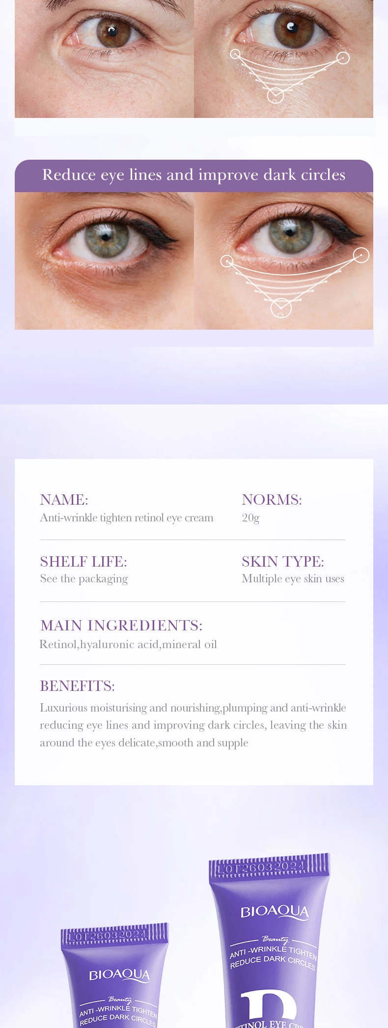 BIOAQUA Retinol Eye Cream Anti Dark Circles Remove Eye Bags Anti-puffiness Firming Repairing Moisturizing Eyes Skin Care