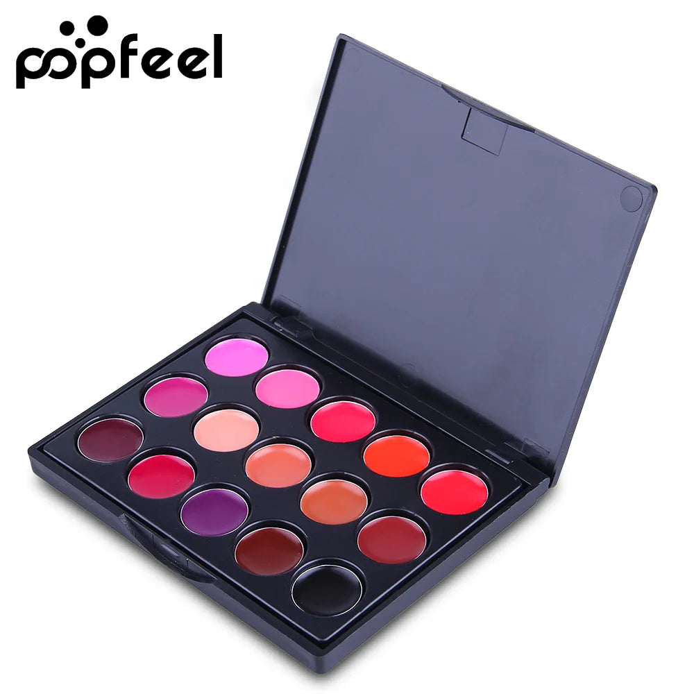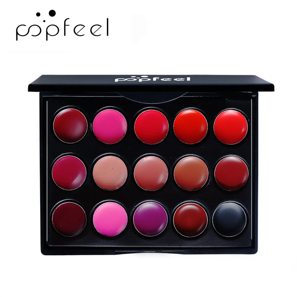 POPFEEL15 Colors Lipstick Palette Set Long Lasting Lip Gloss Korean Cosmetics Women Lip Tint Cheap and Small Beauty Lip Stain
